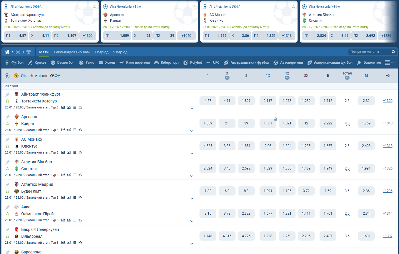 - Проверь список событий: название, коэффициент, рынок
